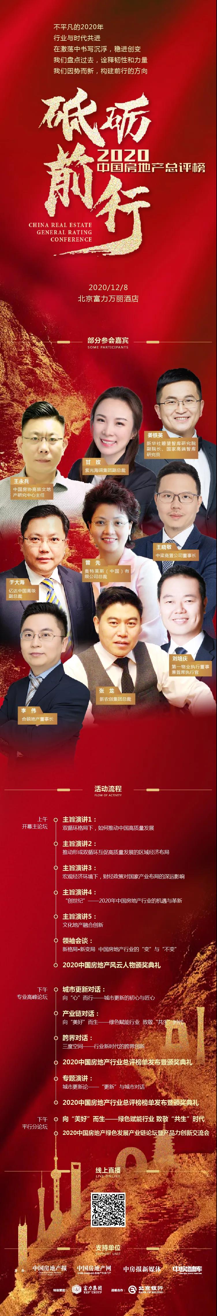 On December 8, a “2020 China Real Estate Overall Appraisal Conference” focusing on the new development of the industry was held in Beijing, which was held by China Real Estate News, China Real Estate Network, China Real Estate News New Media and China Real Estate Think Tank. The conference gathered more than 300 front-line experts, scholars, leaders and senior personages in the industry, which showed the professional discussions and views of outstanding representatives in various fields on the trend of the industry and enterprises in the new era, and gave an authoritative interpretation of the future development trend of the real estate industry under the double-cycle pattern through important forums such as leaders’ talks, dialogue on urban renewal, dialogue on industrial chain and cross-border dialogue.