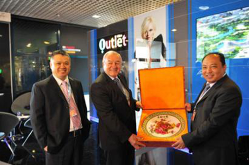 法國(guó)當(dāng)?shù)貢r(shí)間11月17日下午,戛納市市長(zhǎng)MR.BERNARD BROCHAND專程來(lái)到“2011年度國(guó)際商業(yè)房地產(chǎn)展覽會(huì)(MAPIC)”會(huì)場(chǎng),參觀由中國(guó)奧特萊斯協(xié)會(huì)和我司聯(lián)合參展的“中國(guó)奧特萊斯產(chǎn)業(yè)展區(qū)”,并與中國(guó)奧特萊斯產(chǎn)業(yè)代表團(tuán)高層進(jìn)行親切會(huì)談。