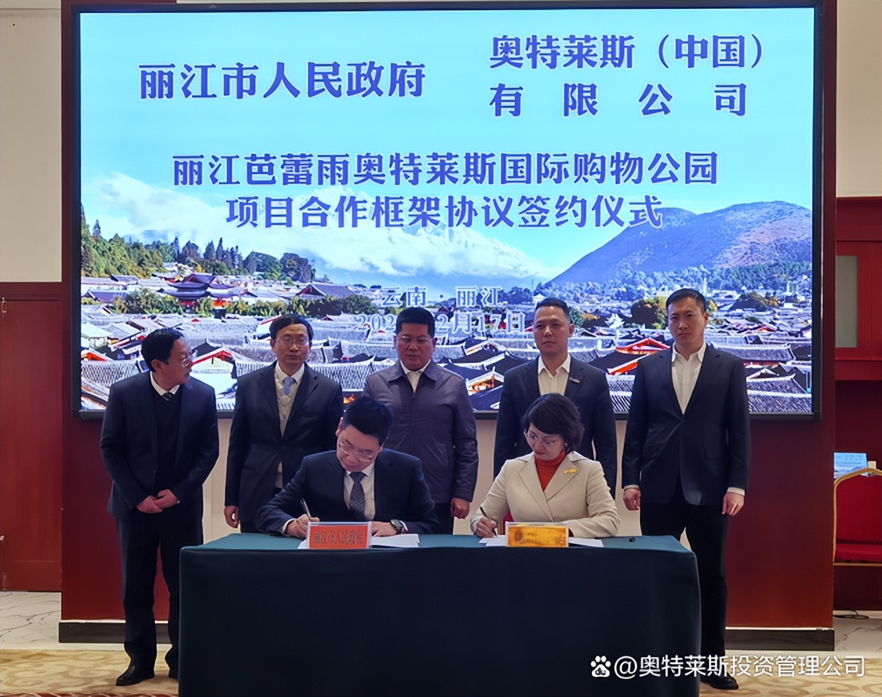 2月17日,奧特萊斯(中國)有限公司總裁拜訪麗江市政府,與麗江市蘇永忠市長在麗江座談,并見證《麗江芭蕾雨奧特萊斯國際購物公園項目合作框架協(xié)議》的簽署。奧特萊斯(中國)助理總裁李曉薩、投資拓展中心總經(jīng)理周毅,以及麗江市政府、市發(fā)改委、市投資促進(jìn)局、市住房和建設(shè)局、市文旅局、玉龍雪山管委會、玉龍縣政府等主要領(lǐng)導(dǎo)參會。