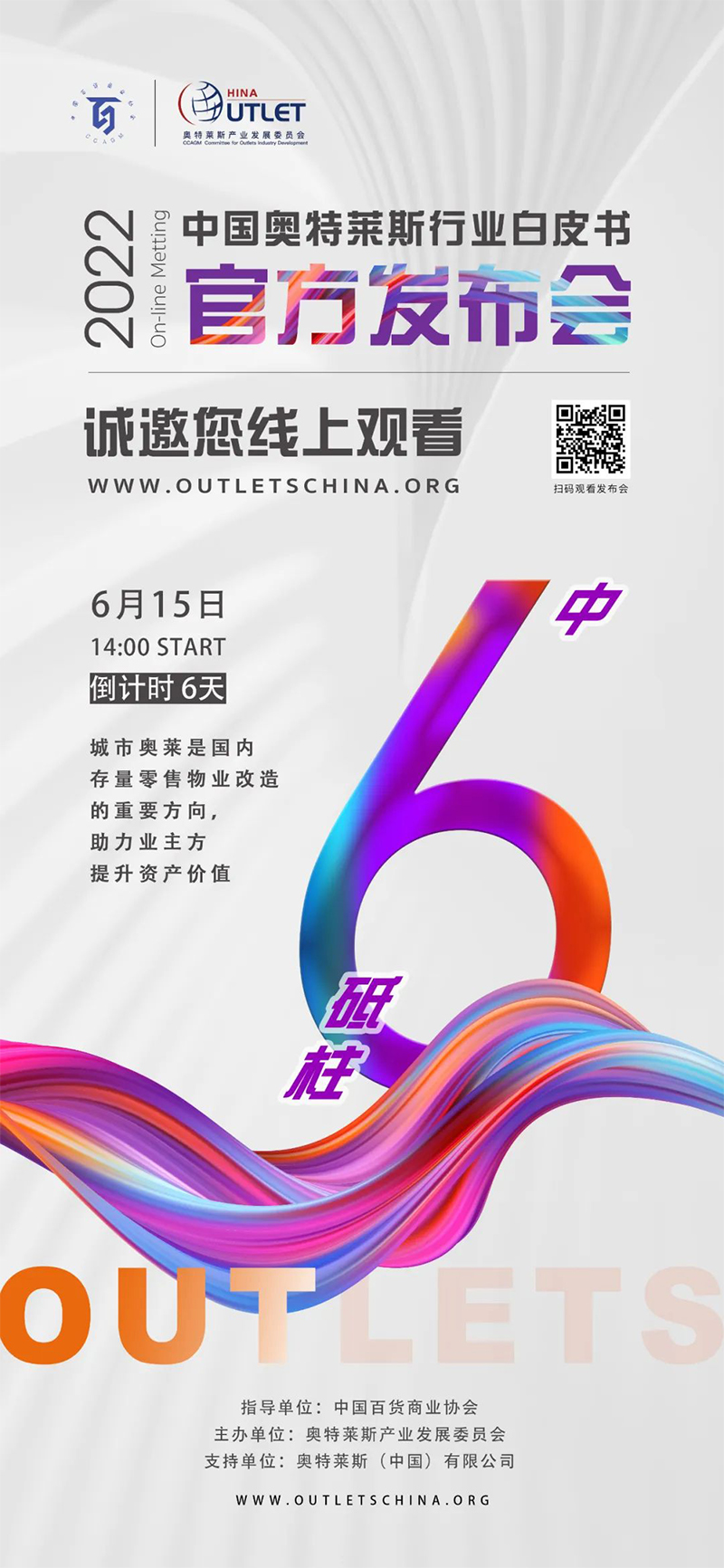 2022年6月15日14:00,《2022年中國奧特萊斯行業(yè)白皮書》線上發(fā)布會即將正式開始,本次發(fā)布會,將對國內零售市場及奧萊產(chǎn)業(yè)引入中國20年發(fā)展的經(jīng)驗及機遇做出全新解讀。