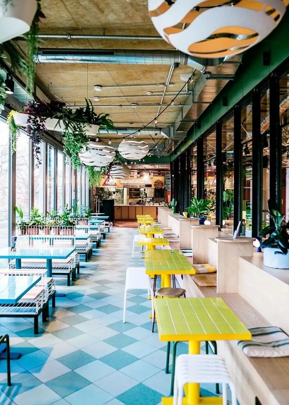 同樣以模塊化構建的還有擁有1800㎡的KANTINI多元餐飲空間,遵循其獨特的故事性、敘事性建筑和拼貼原則的共生關系開啟了新型社交型餐飲空間。