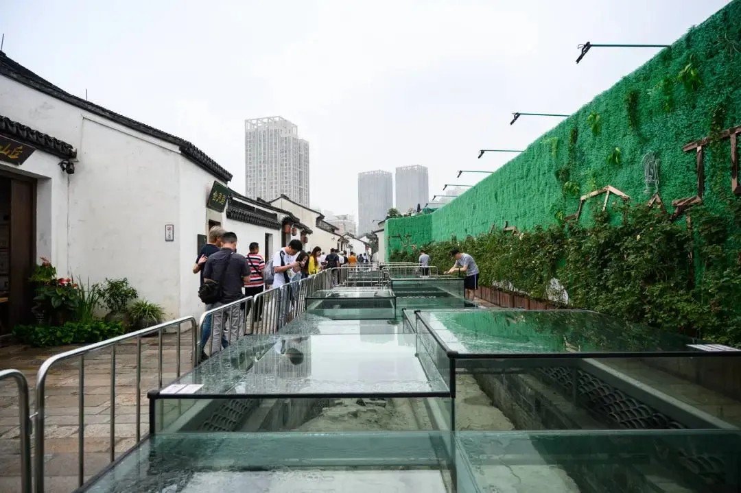 在修整過程中突出“街貫東西、河襟南北、支巷近景、小弄通幽”的空間格局,立體街巷、空中庭院、特色磚墻等創(chuàng)新設計模糊了時空的界限;通過連接、延伸、穿插等手法形成的連綿屋頂,在構筑水鄉(xiāng)意向之外,創(chuàng)造出多種趣味性的底層空間;
