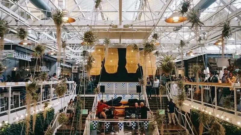 項目舊址同樣具備歷史故事的美國Packing House,始建于1919年,原本是當?shù)氐母涕龠\轉(zhuǎn)中心。直到2014年受傳統(tǒng)集市的影響,才被開發(fā)者Sadeghi改造為美食體驗式社區(qū)商業(yè),力圖以濃厚的本土生活體驗氣息塑造場所精神。通過提供公共餐位來鼓勵人們到店內(nèi)購買食物,并與好友一同分享。項目在提高購物體驗的同時,還增強社交場景的塑造。