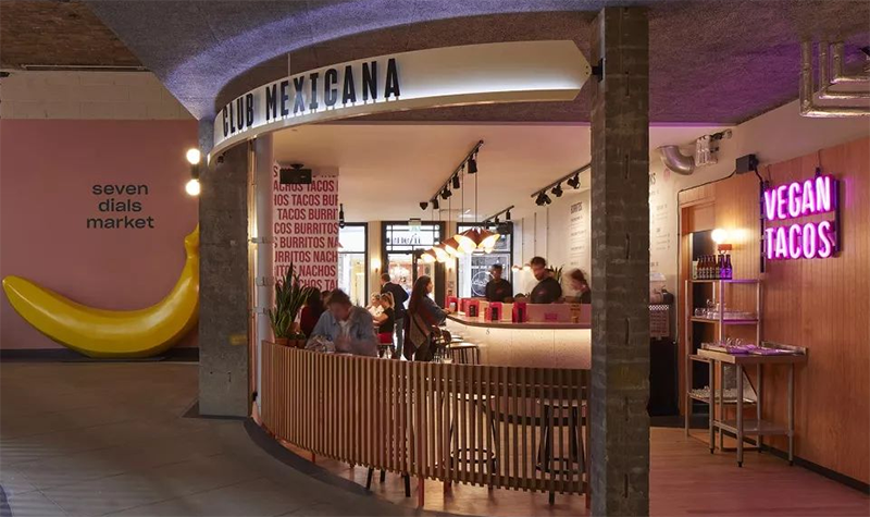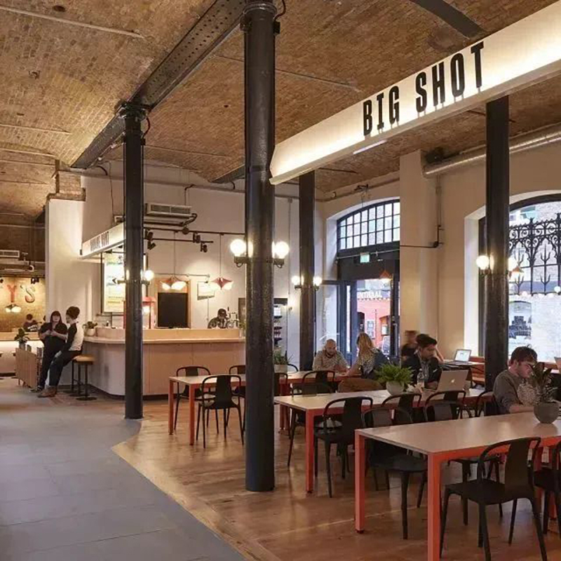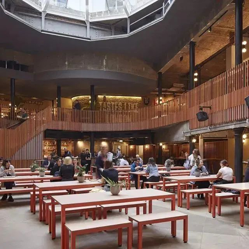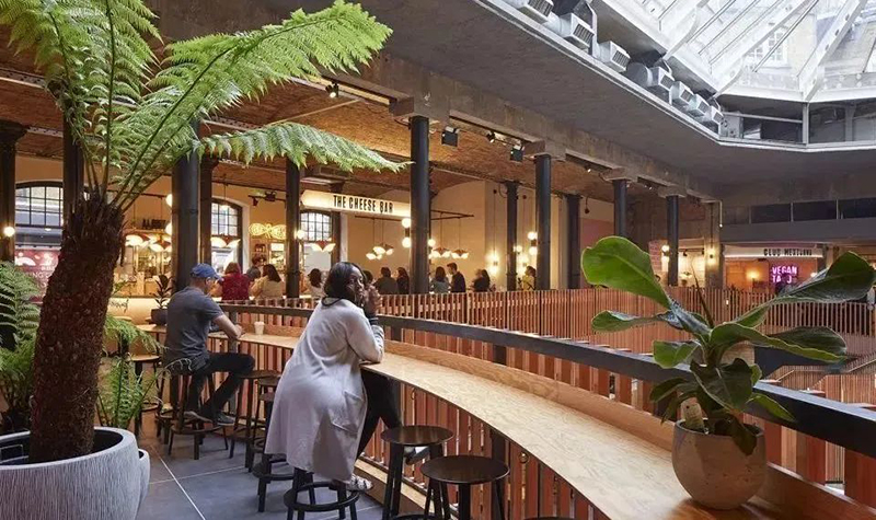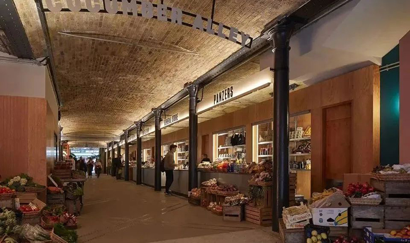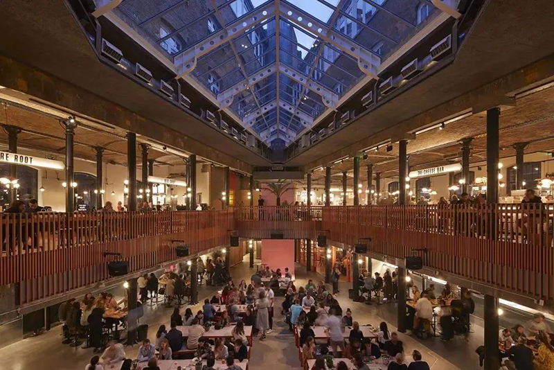 在曾經(jīng)用作儲存黃瓜和香蕉的Thomas Neal倉庫打造24h營業(yè)的Seven Dials美食市集。將整個市集劃分為倫敦專業(yè)生產(chǎn)商的室內(nèi)生產(chǎn)線的「黃瓜巷」和坐擁一系列著名街頭食品商鋪和餐廳的「香蕉倉庫」,給古老的倉庫賦予了新的生機。