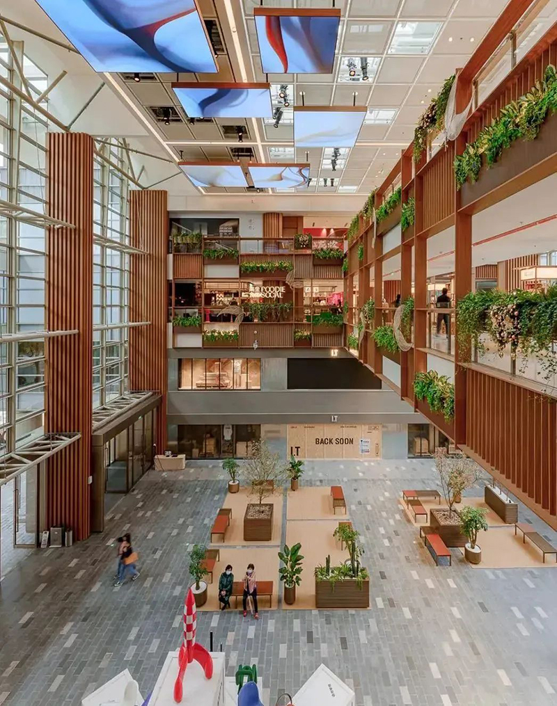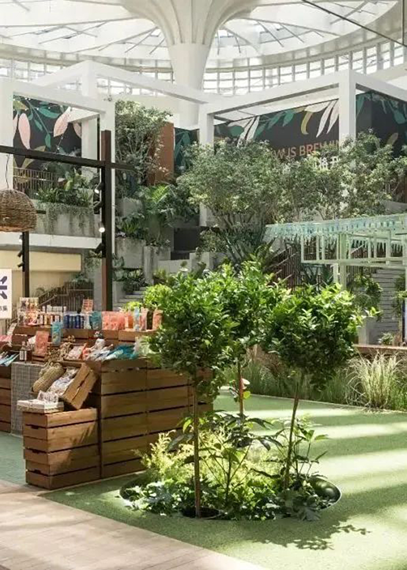 整體劃分為Foodie Market美食集市、Foodie Theatre美食劇場、Foodie Lab美食實驗室等區(qū)域。以中庭美食劇場的主題集市和舞臺為中心,創(chuàng)造田野市集,中庭兩端則分別布置棋盤廣場和陽光花房,形成多主題組團,構(gòu)成活動集聚的主體空間。還通過布滿小食或營地小車的田野食街、充滿野餐氛圍的美食街市以及高低錯落的露臺食街進行空間串聯(lián),搭建整體市集氛圍。