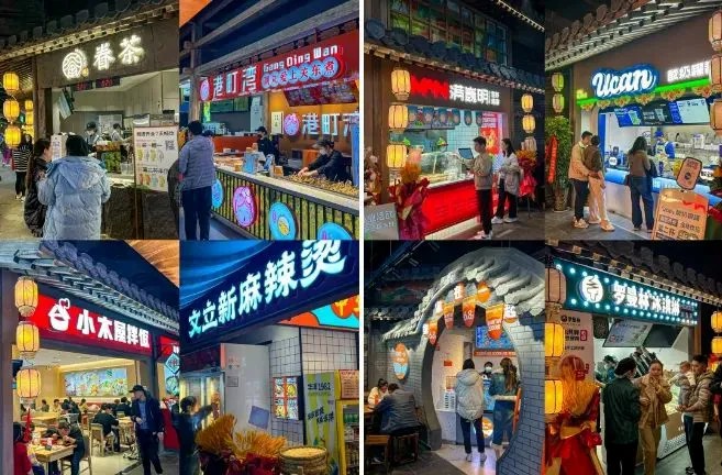與復古宋朝市井生活場景形成有趣反差的是,這里大膽引入眾多特色創(chuàng)新品牌,豐富了商業(yè)項目的就餐選擇和體驗,包括湖南擂辣椒飯【擂飯】、【小木屋拌飯】、【港町灣關東煮】、河南本土gelato冰激凌【極拉圖】、新式飲品【椰不二】、回轉(zhuǎn)小火鍋品牌【串士多】、成都知名小吃【芙蓉巷】、【大吉利潮汕牛肉火鍋】……一舉成為鄭州頂流覓食、社交地。