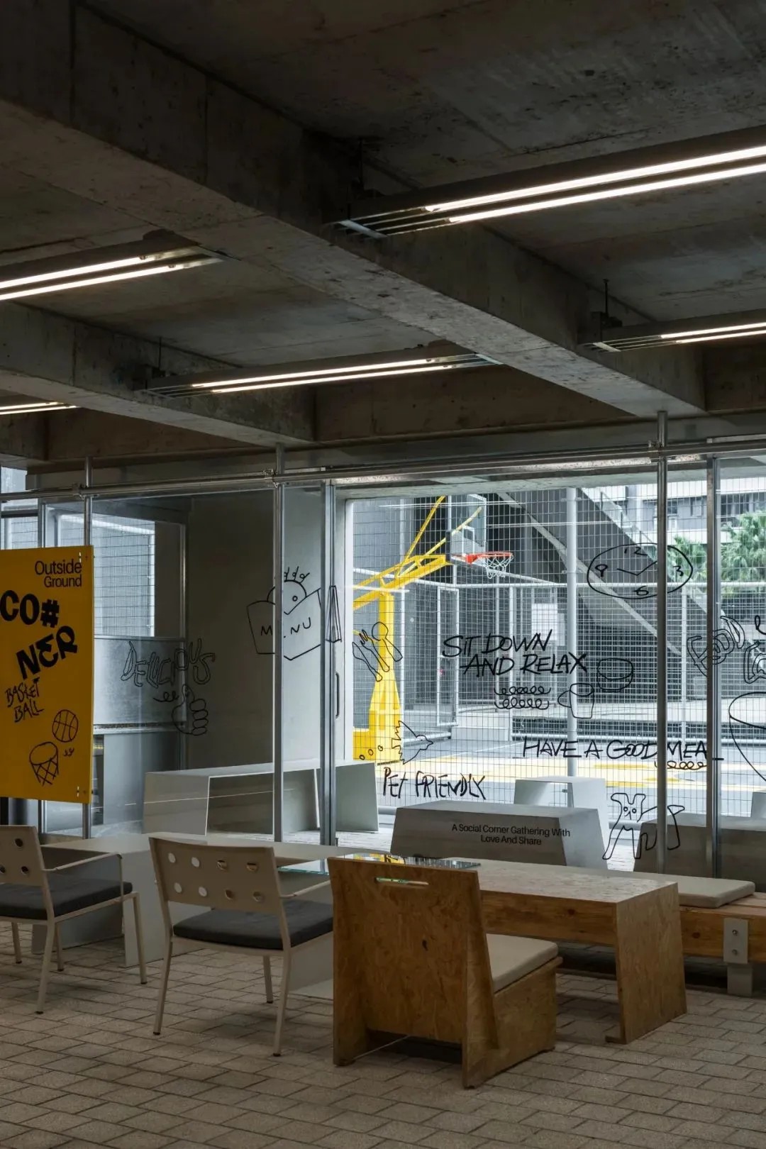 CO#NER食堂,以禁欲系冷淡風(fēng)為主旋律,設(shè)計上承襲了極致輕工業(yè)的時尚美學(xué),細膩而不失格調(diào)。其獨特的售賣模式圍繞模塊化“檔口”展開,融合POP UP快閃店概念,營造出既持續(xù)又多變的用餐氛圍,旨在為顧客解鎖無限可能的美食探索之旅??臻g內(nèi),水泥原色與暖木色家具巧妙碰撞,輔以生動活潑的簡筆插畫,色彩斑斕間傳遞出溫馨舒適的放松信號,讓人在享受美食的同時,也能感受到心靈的慰藉。