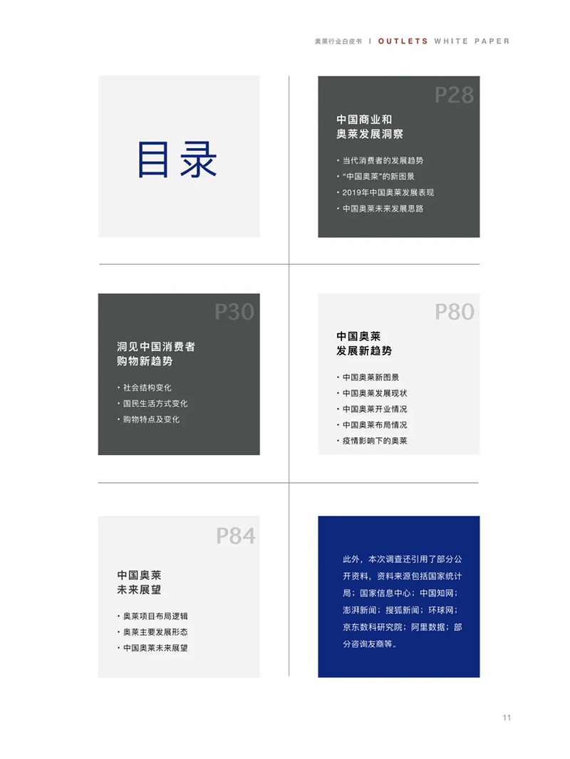 為了及時(shí)總結(jié)中國(guó)奧萊的發(fā)展?fàn)顩r和運(yùn)營(yíng)經(jīng)驗(yàn),引導(dǎo)中國(guó)奧特萊斯產(chǎn)業(yè)在后疫情時(shí)代的健康、快速發(fā)展,我們組織編寫了這部《2020中國(guó)奧特萊斯行業(yè)白皮書》。我們基于對(duì)后疫情時(shí)代中國(guó)經(jīng)濟(jì)的內(nèi)生動(dòng)力,以及中國(guó)消費(fèi)格局、消費(fèi)趨勢(shì)新變化的深?分析,并通過(guò)線上問(wèn)卷調(diào)查與線下深度訪談相結(jié)合的方式,客觀分析了中國(guó)奧特萊斯的發(fā)展表現(xiàn),綜合闡述了中國(guó)奧特萊斯的未來(lái)發(fā)展思路。