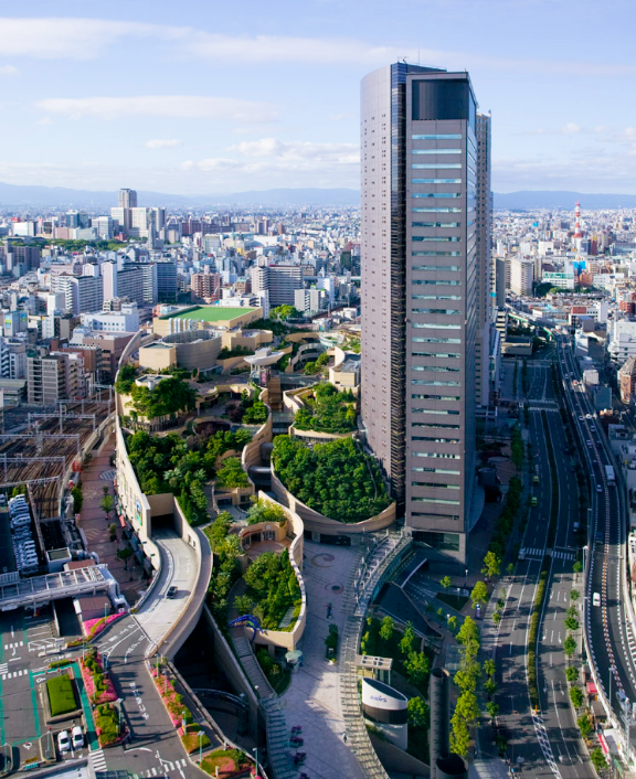 日本難波公園是一座令人驚嘆的都市商業(yè)立體公園,盡管其交通不便,到達(dá)性弱,開發(fā)條件較差,但卻因“公園”的理念絕處逢生。從地面直到8層,一座小山一般層層疊疊的綠色坡地一路延綿而上,種滿了各種綠植和花朵,并且還形成了大大小小的退臺(tái)式院落,容納著各種小餐廳和公共空間。遠(yuǎn)遠(yuǎn)望去,在一片城市的鋼筋水泥森林里,難波公園如同綠洲一般的存在。