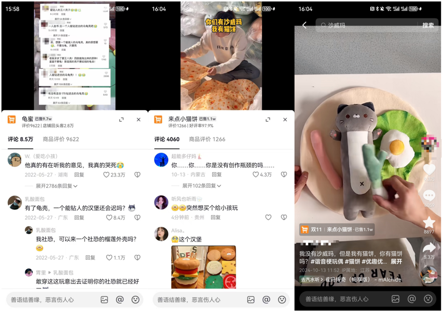 這個毛絨玩具生產商的短視頻更新速度及產品上新速度都非常之快,也常被網(wǎng)友調侃說“你是真的沒有創(chuàng)作瓶頸啊?”,歸結原因在于,關于產品設計的靈感創(chuàng)意其實已經被消費者解決了大半,也自然無需在產品研發(fā)、營銷推廣、內容創(chuàng)作等方面投入過重成本。