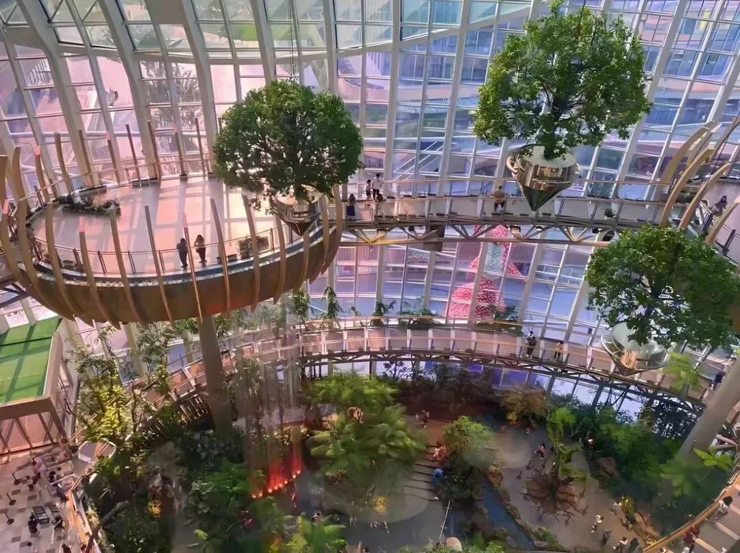 購(gòu)物中心引入綠色自然的戶外空間和各類健康運(yùn)動(dòng)的活動(dòng),不失為一種常見(jiàn)策略。如重慶光環(huán)購(gòu)物公園通過(guò)生態(tài)綠植、以綠色填充商業(yè)公共空間,給年輕人營(yíng)造一種仿若森林的美感,混合著泥土氣息的自然美感撲面而來(lái),呈現(xiàn)一處城市生態(tài)綠洲。
