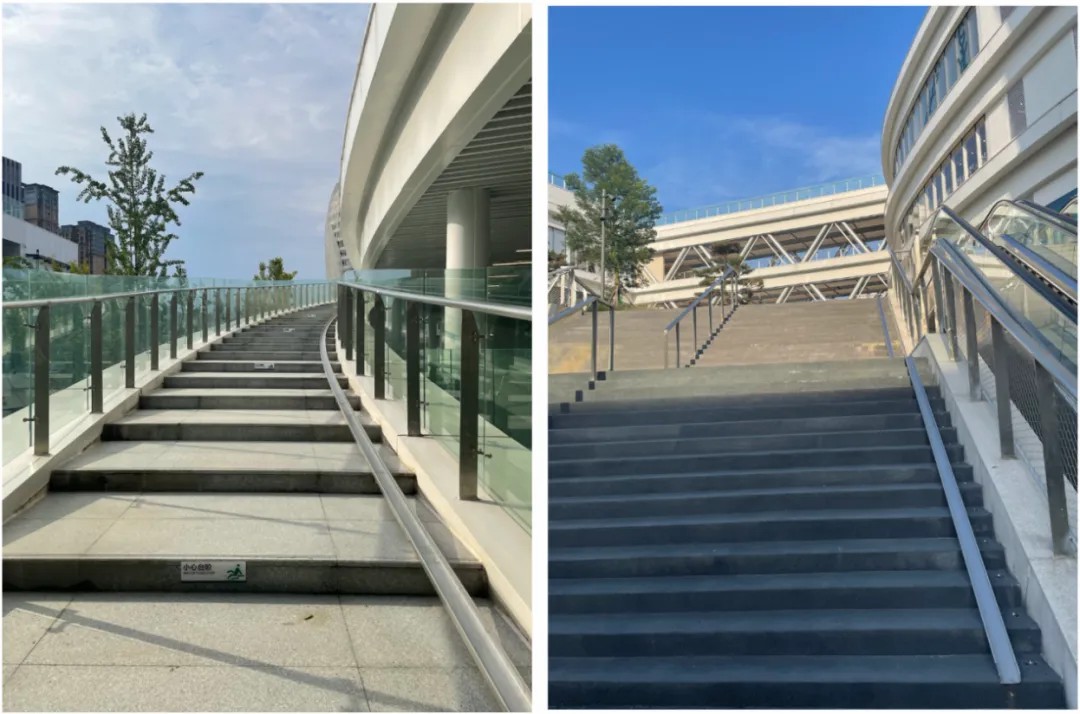“騎行友好”是CyPARK的核心標(biāo)簽。在這座立體公園中,各樓層的垂直交通上,專門(mén)設(shè)置了自行車滑道和能容納自行車體量的直梯,騎行者可以騎行通過(guò)任意樓層,讓騎行游逛商業(yè)成為可能。每個(gè)樓層還設(shè)置了自行車停放處,騎行者可以自行掃碼加鎖,也可以在此處休憩。