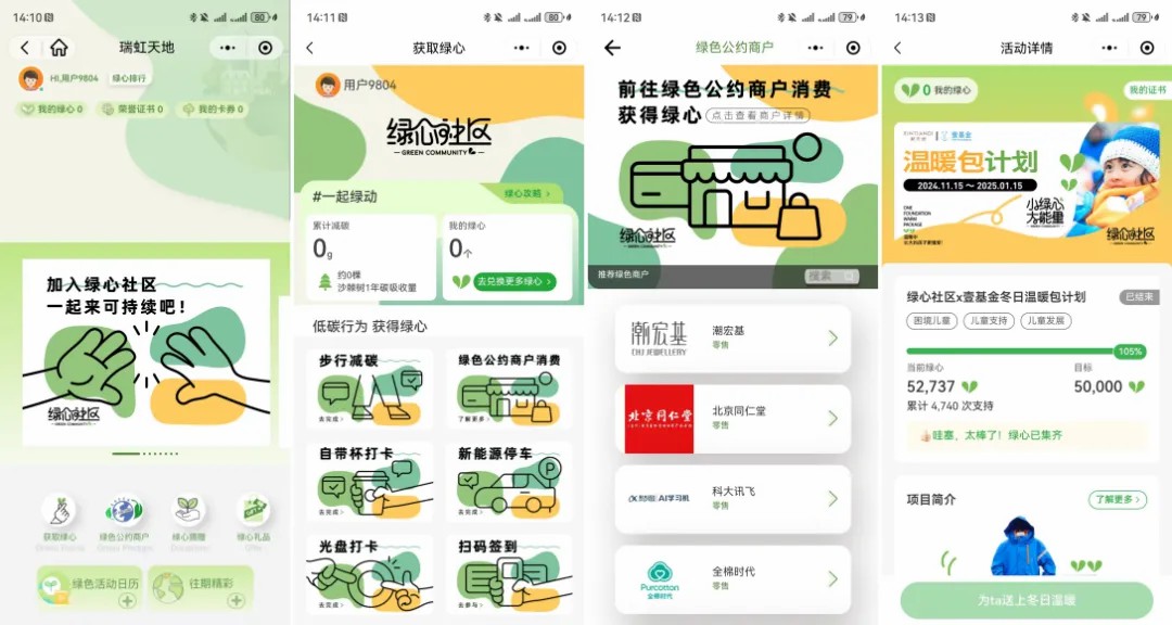 再比如,上海新天地開(kāi)發(fā)上線了消費(fèi)者“綠心”會(huì)員碳賬戶(hù),在線下結(jié)合綠色餐廳大賞活動(dòng),推廣有機(jī)低碳的餐飲經(jīng)營(yíng)。“綠心社區(qū)”的上線為商業(yè)與消費(fèi)者之間搭建了一條綠色的通道,令可持續(xù)行為可積累、可觸達(dá)、可量化、可兌換,培養(yǎng)消費(fèi)者從意識(shí)、認(rèn)知到生活方式邁向綠色的轉(zhuǎn)變。