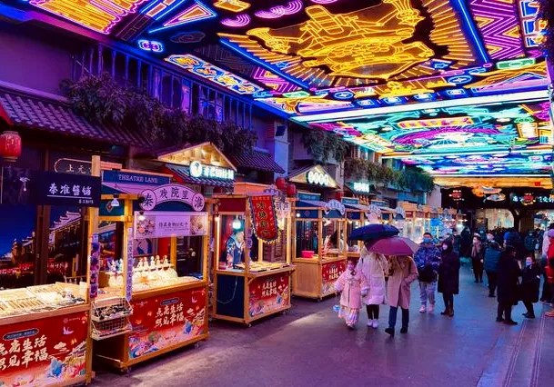 在建筑與空間設(shè)計(jì)方面,許多購(gòu)物中心保留了當(dāng)?shù)氐臍v史建筑和文化元素,如倫敦的Coal Drops Yard購(gòu)物中心保留了維多利亞時(shí)期的建筑風(fēng)格,維多利亞女王大廈(QVB)融合了羅馬風(fēng)格建筑,成為當(dāng)?shù)氐臍v史性旅游景點(diǎn)。在國(guó)內(nèi),成都遠(yuǎn)洋太古里則融入了川西民居特色,營(yíng)造出獨(dú)特的購(gòu)物體驗(yàn);天津西青大悅匯以“京杭大運(yùn)河文化”為主題,打造了食肆碼頭主題街區(qū)場(chǎng)景,重現(xiàn)了天津的歷史變遷;鄭州1948主題街則通過(guò)復(fù)原民國(guó)時(shí)期的火車站臺(tái),營(yíng)造出濃厚的市井文化氛圍。