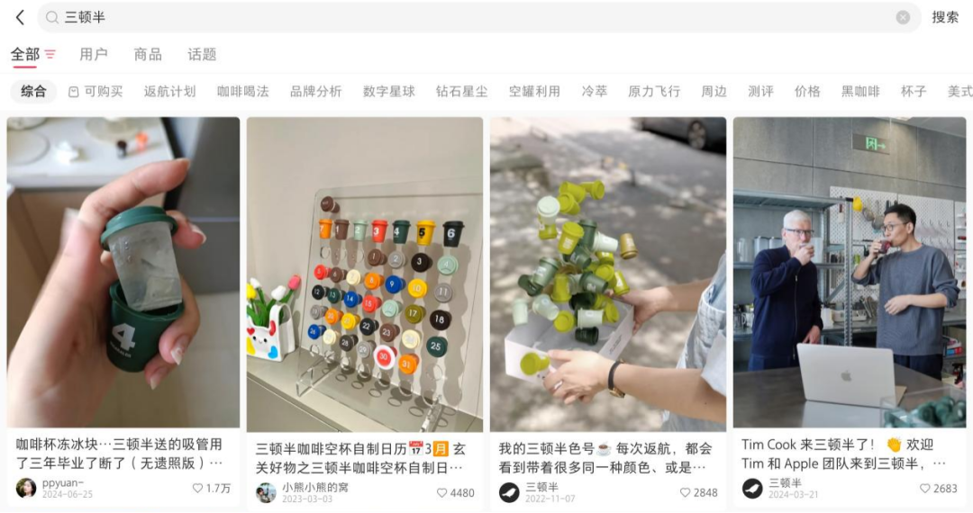 三頓半作為咖啡領(lǐng)域的創(chuàng)新先鋒,其憑借獨(dú)特的小罐咖啡形式,曾在小紅書上掀起了一股咖啡熱潮。眾多美食和飲料主播使用三頓半推出各種創(chuàng)意的咖啡沖泡教程和咖啡與美食搭配的內(nèi)容,如咖啡拿鐵、摩卡星冰樂(lè)等,為用戶展示了咖啡的無(wú)限可能性。消費(fèi)者也積極響應(yīng),在小紅書上分享自己獨(dú)特的“三頓半空罐創(chuàng)意玩法”,將空罐制作成各種精美的手工飾品,展現(xiàn)了他們對(duì)生活的小巧思和對(duì)品牌的熱愛(ài)。此外,三頓半還精心策劃了豐富的營(yíng)銷活動(dòng),例如“返航計(jì)劃”,該活動(dòng)鼓勵(lì)用戶收集咖啡空罐,并前往指定地點(diǎn)兌換周邊產(chǎn)品或參與線下活動(dòng)。這不僅有效提高了用戶的參與感,還極大地增強(qiáng)了品牌忠誠(chéng)度。