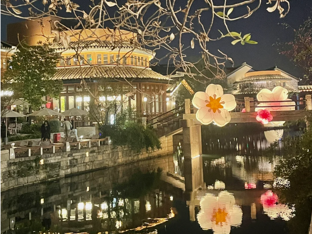 南京建鄴吾悅廣場B1層秀河坊以秦淮河為靈感,首創(chuàng)國內(nèi)400米室內(nèi)水系長廊,其中秀河坊主題空間分為室內(nèi)水街與室外水街兩部分,其中室內(nèi)水街以水為軸,提煉秦淮河兩岸的廊、軒、閣元素融入其中,串聯(lián)船塢燈市、曲溪軒流、摩扇亭三大特色場景,中間穿插了煙水橋、隙月橋、文樞橋、花雪橋四大特色連橋,巧妙還原了具有老南京記憶的文化場景。位于歷史文化名鎮(zhèn)新場鎮(zhèn)的上海新環(huán)廣場,其建筑設(shè)計結(jié)合了現(xiàn)代手法與傳統(tǒng)元素,低區(qū)采用黑白陶土掛板線條,抽象表現(xiàn)“上海石庫門”歷史建筑的特征,而頂部的圓環(huán)體量玻璃幕墻則展現(xiàn)了當(dāng)代設(shè)計的通透感,這種古今交融的設(shè)計致敬傳統(tǒng)的同時也前瞻未來。
