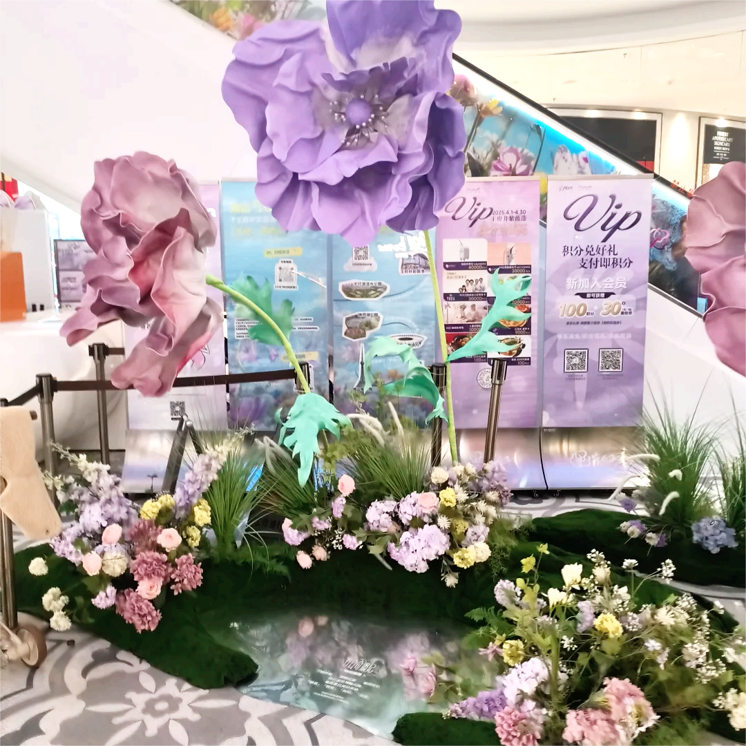 佛山王府井紫薇港以紫薇花為核心,結(jié)合佛山的城市文化,打造了全國首個以紫薇文化為核心的商業(yè)綜合體。以“百年古樸紫薇集群”為核心景觀IP,并結(jié)合了嶺南原生植物群落,營造出獨(dú)具特色的文化氛圍。此外,還依托“紫薇文化”打造了紫薇噴泉廣場、紫薇天臺天際花園等標(biāo)志性節(jié)點,形成的沉浸式“環(huán)境劇場”生態(tài)長廊,將商業(yè)空間轉(zhuǎn)化為“可漫步的城市綠洲”。并且每年6-9月的“紫薇花廊”吸引了大量市民駐足欣賞,增強(qiáng)了商場的吸引力和影響力。