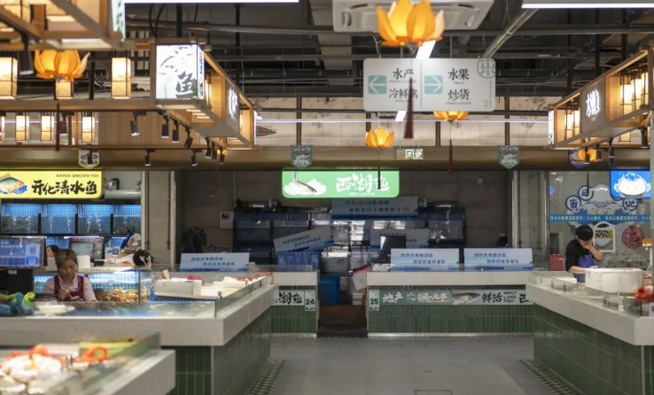 改造后的福明菜場對空間進行了重新規(guī)劃,設置了蔬菜、水果、肉類、海鮮、禽蛋、豆制品、熟食等不同的功能區(qū)域。除了傳統(tǒng)的農(nóng)產(chǎn)品攤位外,福明菜場還引入了許多特色業(yè)態(tài)。如增加了鮮花店、烘焙坊、小吃店、便利店等,滿足了消費者在購物過程中的多樣化需求。同時,還設置了一些品牌農(nóng)產(chǎn)品專賣店,提供高品質(zhì)的特色農(nóng)產(chǎn)品,提升了菜場的檔次。