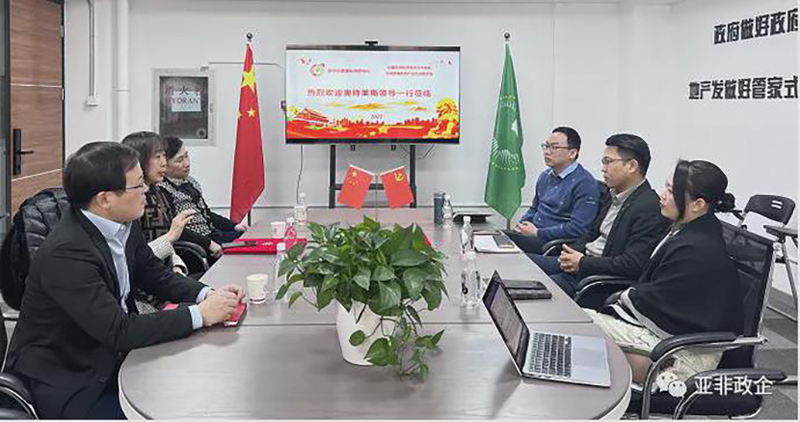2022年2月17日,奧特萊斯(中國)助理總裁、奧特萊斯產(chǎn)業(yè)發(fā)展委員會秘書長馬弢、研究中心主任陳壽彭等一行蒞臨亞非絲路,並與我會副會長兼秘書長、亞非絲路商務(wù)中心常務(wù)副主任、絲路國家館館長楊志慧、我會執(zhí)行秘書長姜麗娜、副秘書長兼絲路國家館副館長顧偉業(yè)進(jìn)行友好互訪商洽,並達(dá)成多項戰(zhàn)略合作共識。